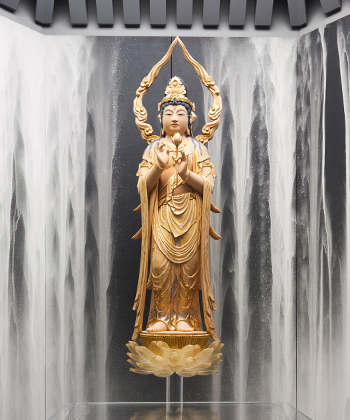 また、“KooNe”というハイレゾリューションを利用した空間音響によって、地上からご本尊が祀られている最上階へと上がる過程で、「波」「川」「森」と順番に自然界の要素を感じることができるようになっています。